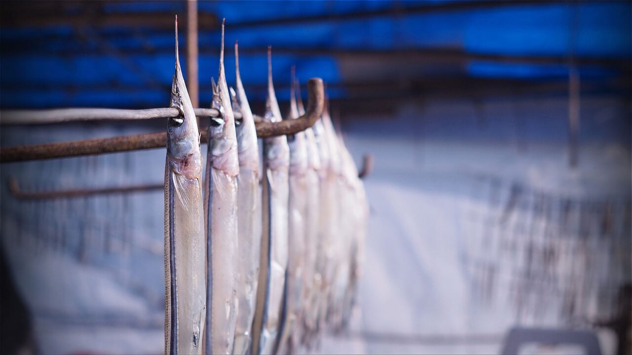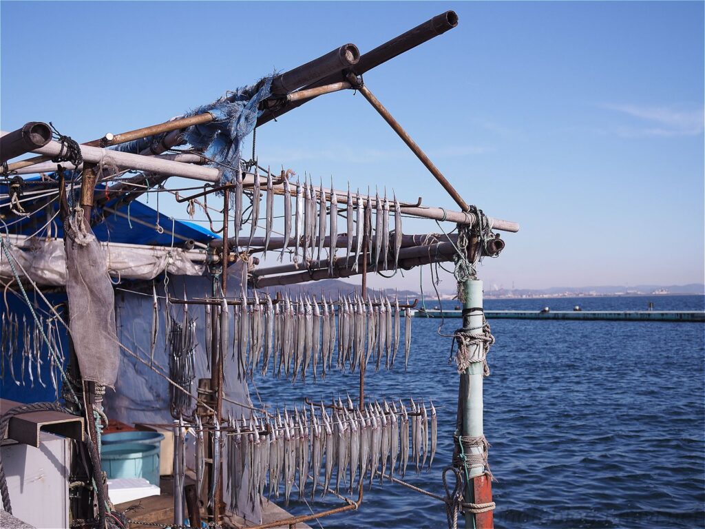 鞆(とも)の冬の風物詩、サヨリの天日干し