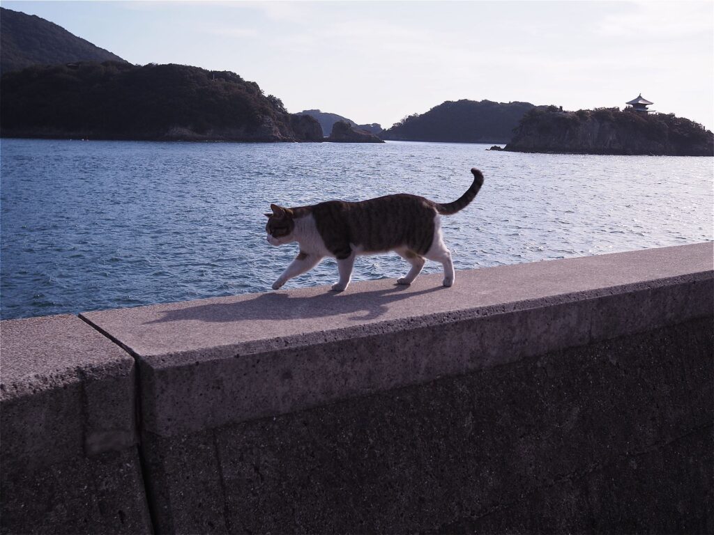 干されているのをたしかめるように、どこからともなく近所の猫が遊びに来てました。