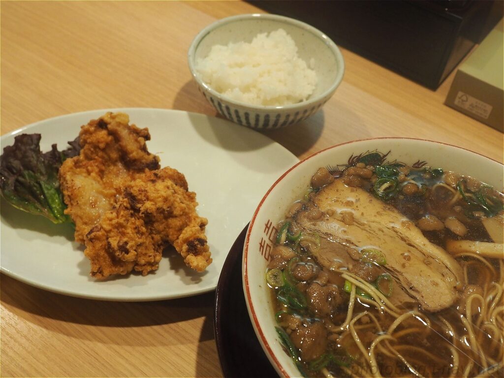 唐揚げ定食はそば+唐揚げ+ごはんの構成で1,030円
