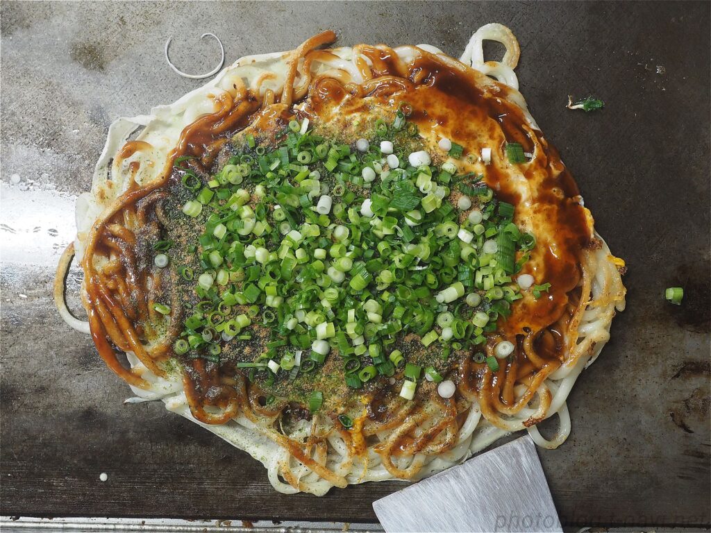 お好み焼き うどん セミダブル 830円にネギ130円をトッピングしていただきました。